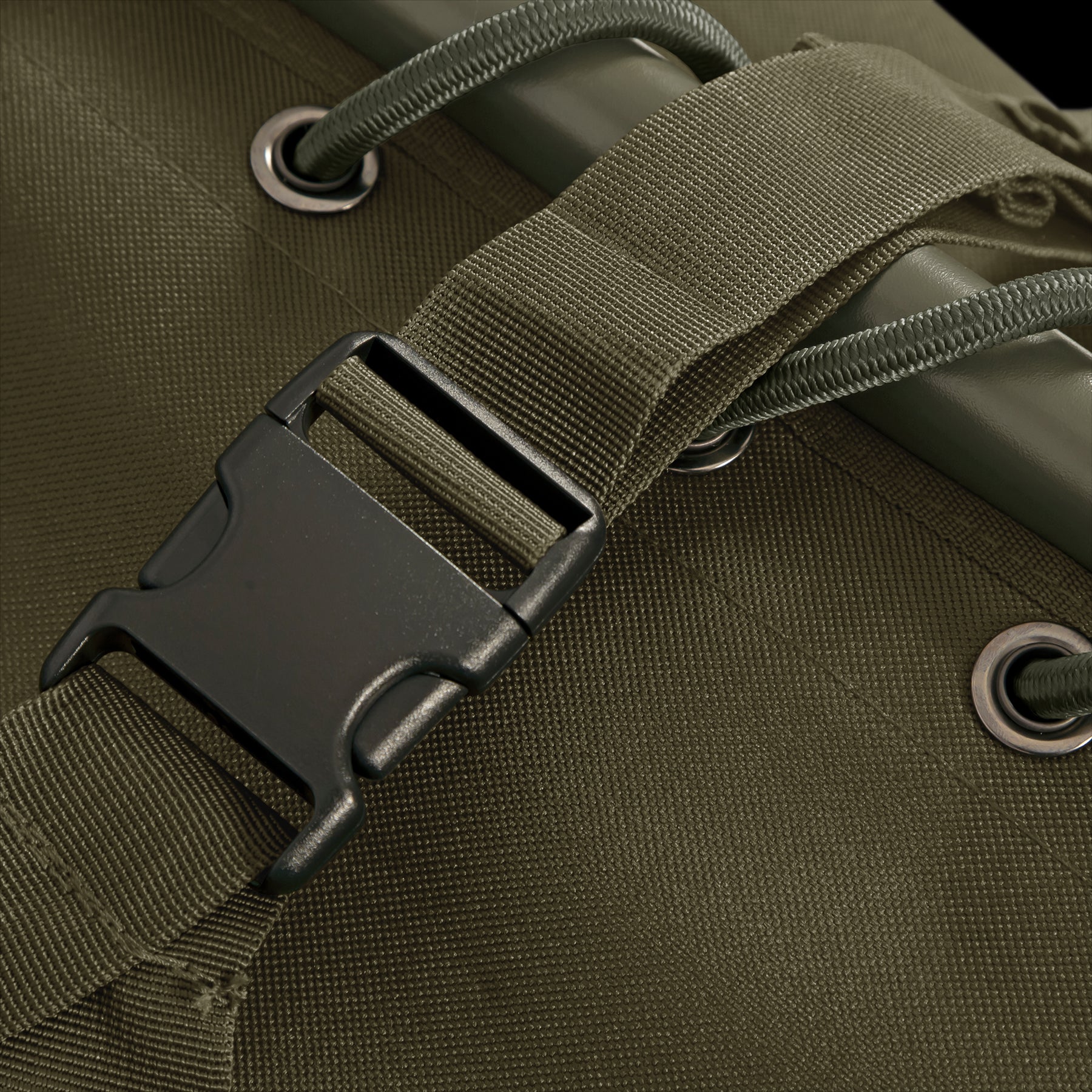 Central fastening compression strap allowing you to fold away with a sleeping bag attached