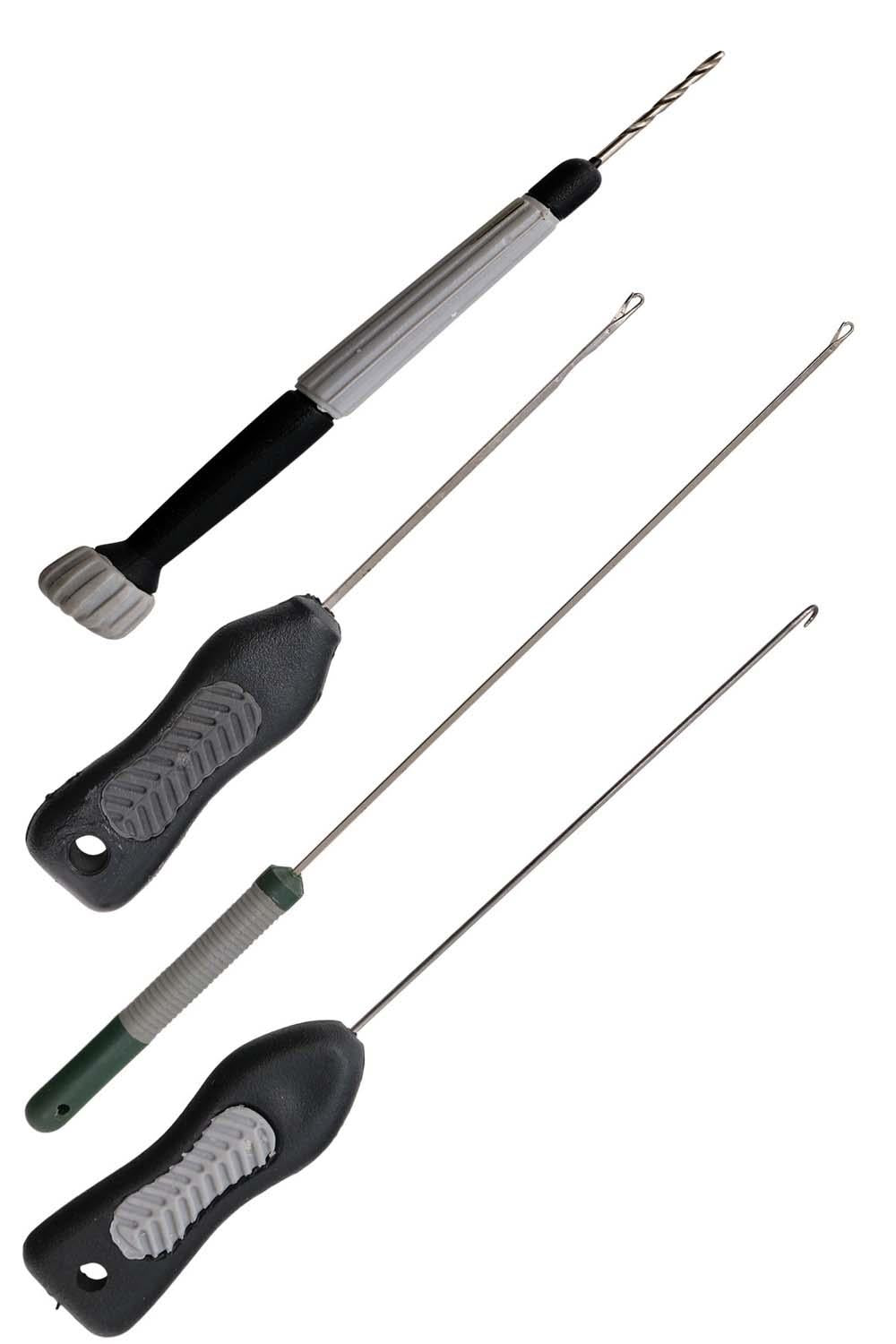 A thin diameter needle that allows a series of boilies or other baits to be threaded onto it. The angler can then hook the PVA tape through the hook at the end of the needle and then thread the baits down the needle onto the PVA tape. This creates a stringer bait that is irresistible to specimen fish, including carp. The needle has a soft touch, rubberised handle for comfort and grip.