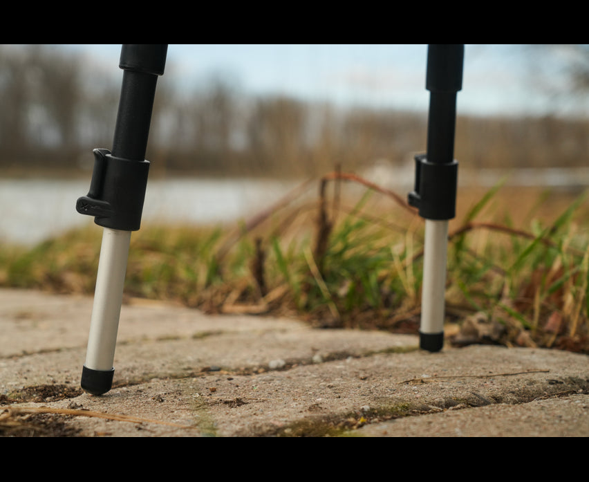 Spring-loaded legs fold flat for easy transportation
