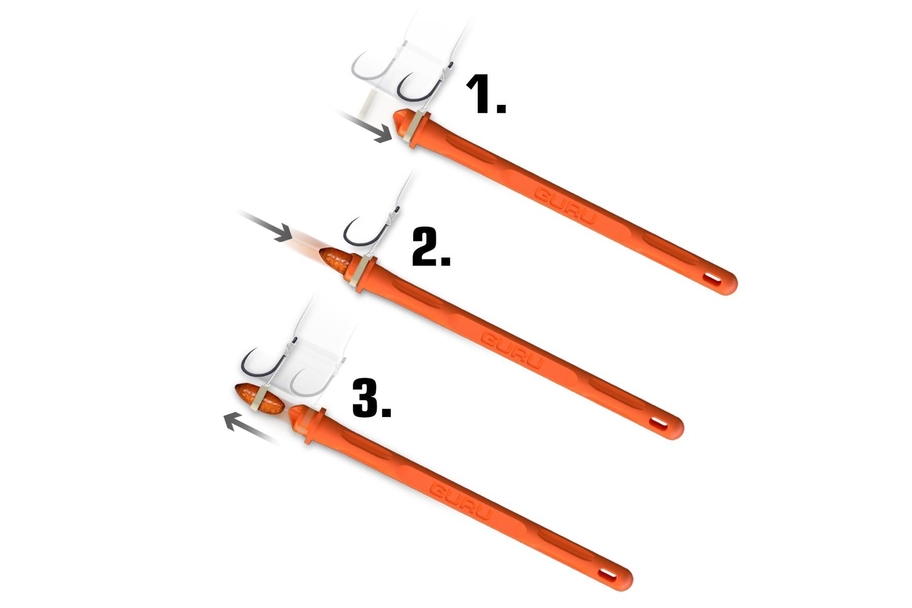 The head of the speed bander has a protruding tooth, this is used to slip the band over. The head of the speed bander also has a hole to place the bait in position, ready to pull your band over the tooth of the speed bander and onto your bait. The tooth helps not only to protect delicate baits from bursting, but also help the band sit centrally on your bait, optimising presentation.