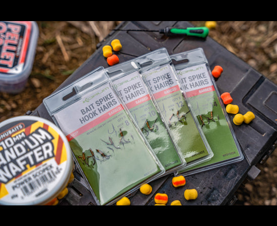 Presenting boilies, pop-ups and wafters has never been as easy. Complete with a 7mm barbed bait spike whipped to an Xpert Power hook, Hook Hairs are easy to attach and strong enough for even the biggest specimens.