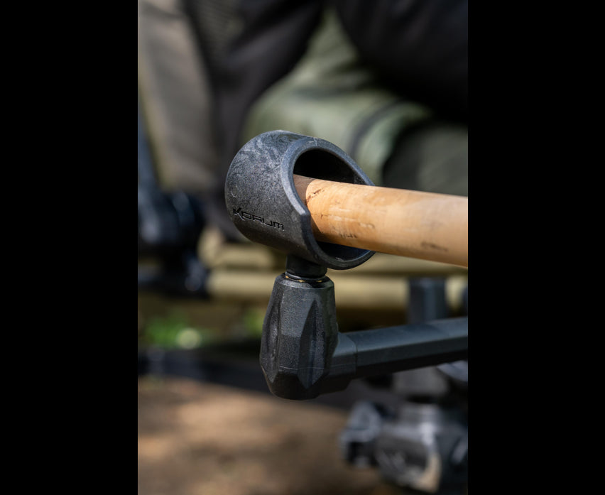 Ideal for fishing with rods held high to keep line off the water. Holds the rod very securely in position. Can be used with pods, tripods or banksticks. Comes with rubber locking gromit and drainage hole. Strong brass thread.