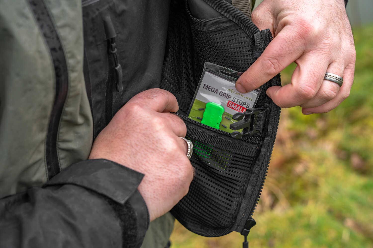 Active fishermen will love the Glide Roving Vest. It has conveniently-positioned pockets that accept items from our Tackle Blox series, like the Float Blox, Rig Blox and Bits Blox. The comfortable vest also features additional pockets for terminal tackle, tools and your personal belongings. The rear pouch is a convenient place to store more tackle and bait and can be removed and worn separately from the vest if required. Made from a water-resistant and durable jacquard fabric. One size only. Will fit anglers size S to XXL.