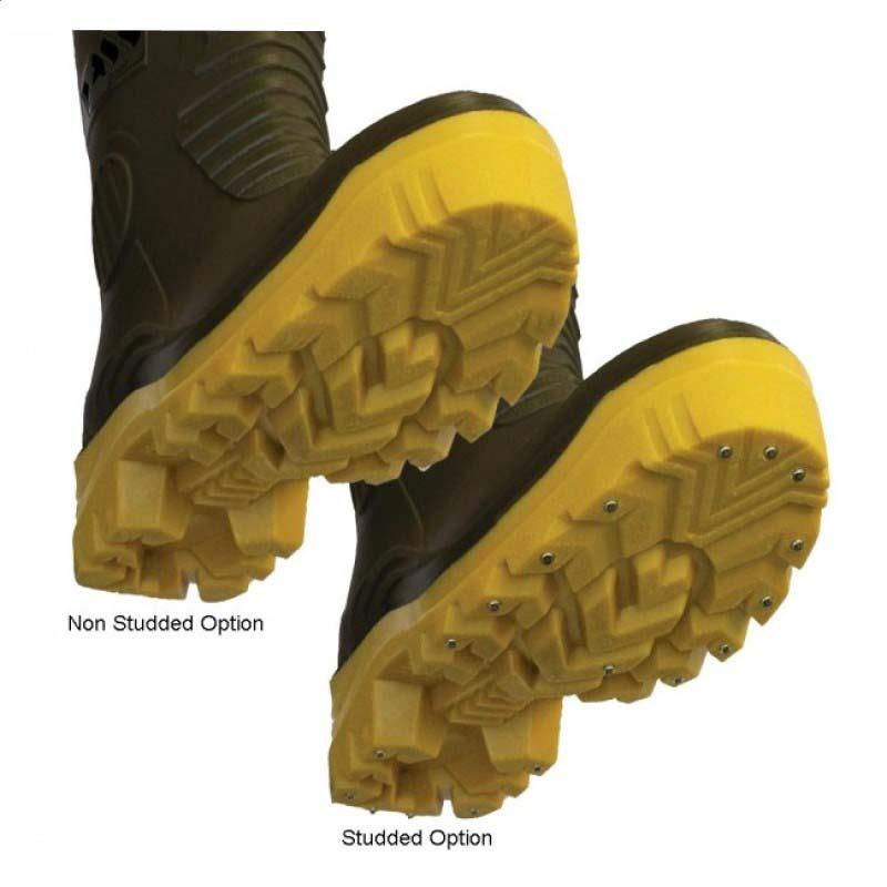 Non-Studded and Studded sole options available. Studded soles provide extra grip on slimy/mossy rock & stoney surfaces. Also, wet wood i.e slippery wooden retainers around some lakes)